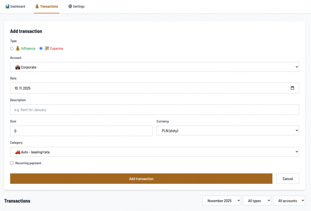 User sends: "James, Payment, 2500 PLN, payment date 3.11"